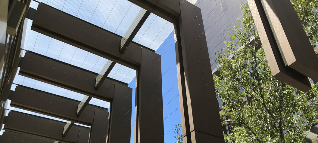 Installation of architectural feature composite timber cladding to steel beams and columns including fabrication, supply and installation of stainless steel wires and associated stainless steel componentry.