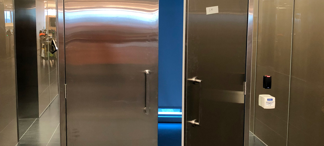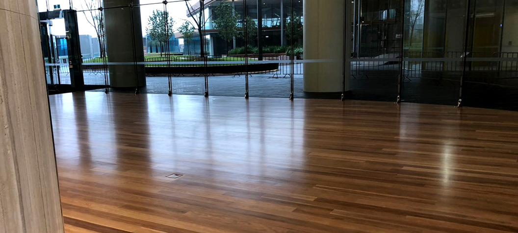 Supply and installation of 520 solid core timber doors including installation of door hardware. Supply and installation of 300m2 of brushbox solid timber flooring to the ground floor entrance. Supply and installation of blackbutt timber treads, landings and 32mm diameter blackbutt handrail including all associated stainless steel fabrication, fittings and LED undermount feature lighting, supply and installation of fire and blast resistant doors and hatch, installation of sanitary hardware to 30 x levels of male and female office amenities.